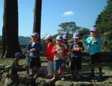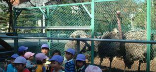 | 2002年10月11日 ぱんだ組とうさぎ組で散歩に行きました。 昨日は公園に行ったけど、今日は神社で遊び、ダチョウを見に行きました。 |
