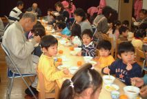 | いよいよみんなでお食事です。 地域の高齢者クラブ、保護者会の役員さん、保育園の理事さん、職員そして子供たち・・・ みんなで搗いたお餅とぞう組きりん組が切ってくれた野菜を使ったけんちん汁。 とってもおいしかったです。今年もいろいろな交流事業をしました。いろいろな経験をしました。 もうすぐ、クリスマス。ホールではツリーが綺麗です。 |