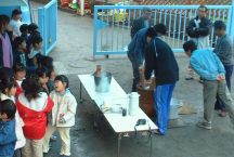 | 2003年12月12日餅つき大会 平成2年からお餅つきをしていますが、初めて雨が降りました。 |