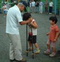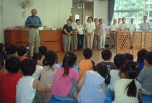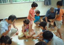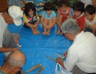 | 平成15年7月31日 地域のおじいちゃん おばあちゃんたちに 昔の遊びを教えてもらいました。 |