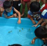 笹舟が出来上がった。 見て見て!! 浮かんでいる。 |