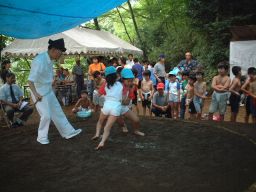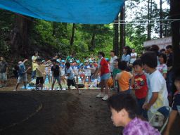 | 負けた〜悔しい〜と泣いているのは女の子でした。 勝っても負けてもうれしいお土産を頂いて、ご挨拶をして帰ってきました。 小学生夏休み最後の行事を地域の方々は一緒に楽しみました。 |