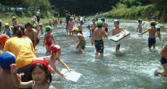 今年も千ヶ瀬第一保育園のお友達が、遊びにきました。 成木川は、前日に雨がいっぱい降って、ちょっと川の水は多かったけど、 みんなで川遊びができました。 |