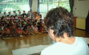 | おじいちゃんやおばあちゃんが知っている歌。 子供たちが知っている歌。 たくさんの曲にあわせて、歌ったり、手拍子したり すごく楽しかったです。 もっと聞きたくて「アンコール!!」が出ました。 小さい子が気持ちよくなって、スヤスヤ・・・・ 子供たちはとても印象深かったようで、 翌日も鼻歌のように廊下で歌っていました。 |