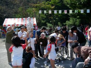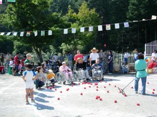 | 九十九園 あゆみえんのおじいちゃんおばあちゃんたちとぞう組の玉いれ 早くから来て、みんなの頑張る様子を見て、いっぱい応援してくださいました。 |
