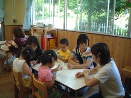 0.1.2歳児のクラスには地域のおばあちゃんたちが来て、一緒に遊んでくれました。