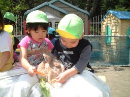 | 保育園の園庭が動物園になりました。 今年で2回目です。 たくさんの動物と触れ合うことができて、とっても楽しかったです。 |