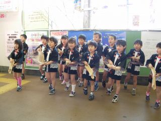 | 青梅線の河辺駅で玉すだれ。 大道芸です、みんな足を止めて、手拍子で応援してくださいました。 |