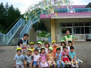 事務室の前には誰でも飾ってくださいの笹を用意して、送迎の保護者の方などが