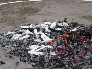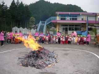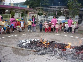 先日掘ってきたサツマイモ 園庭で大きな焚き火をして焼き芋にしました。