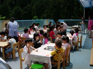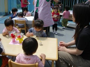お母さんたちはお誕生会に参加して、その様子を見たり、
