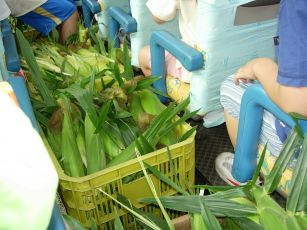 帰りのバスの中はとうもろこしでいっぱい