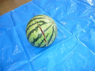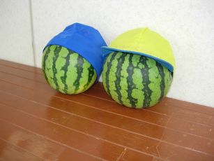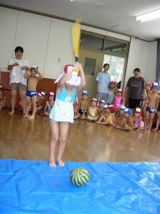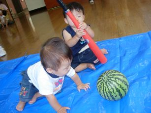 夏の終わりの行事 プール納めにスイカ割をしました。