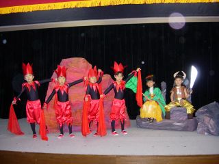 きれいな衣装を着て、すっかりその気になってうれしそうな子供たち。小学校に行くとなかなかそういう体験もできません。