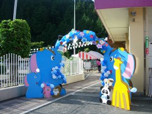 お客様をお迎えするのは各クラスの動物さんたちの門