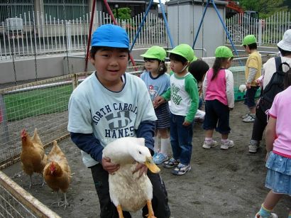 保育園の園庭が動物園になりました。 今年も、子育てひろばの親子、保育ママさん利用のお子さん、三田保育園のお友達も招待しました。 |