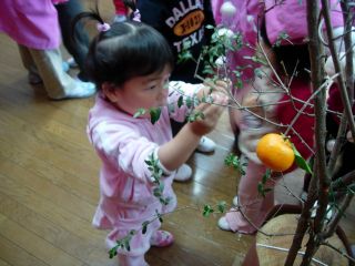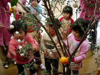 蒸している間に、小さいみかんを飾りました。