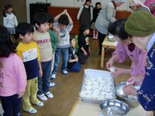 おばあちゃんたちがこねて、