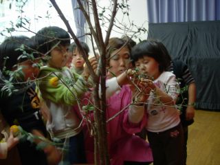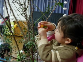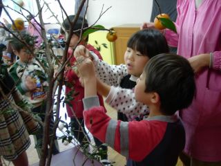 つげの枝、うめの枝 自分で場所を選んでさしました。