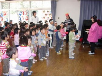 先生から豆をもらって、豆まきの歌を歌いました。