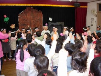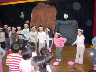 | そこに用務員さん登場、・・・鬼は「もう悪いことはしません・・・・みんなに良い鬼になることを約束しました。 |