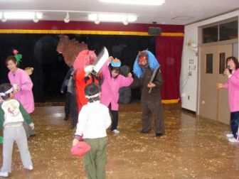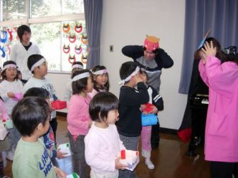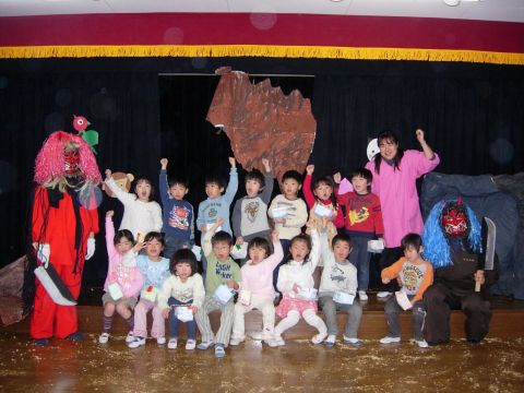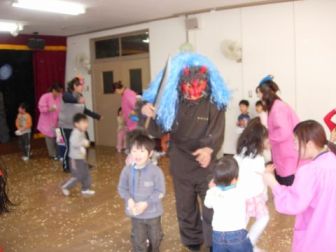 鬼の役は、ひろこ先生とかおり先生。とってもかわいい鬼。