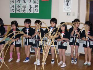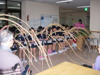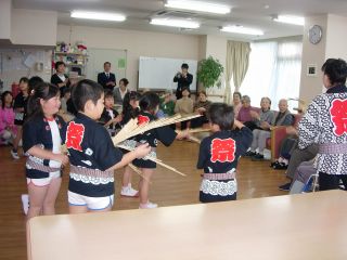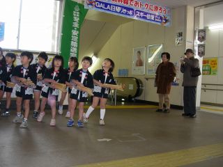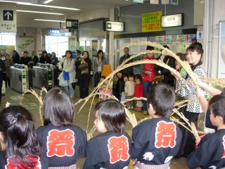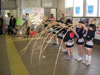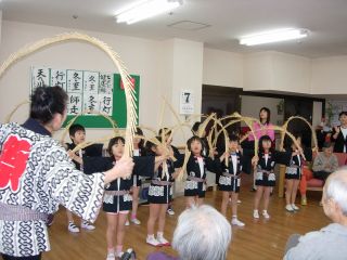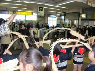 今年も、青梅線の河辺駅で今年も年長児が南京玉すだれをしました。