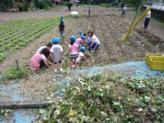 登園するとすぐにぞう組は畑に行きました。