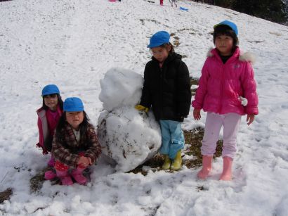 雪だるまもできました。子どもたちにとっては、とってもうれしい雪でした。