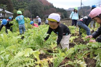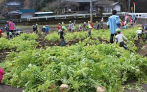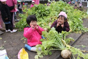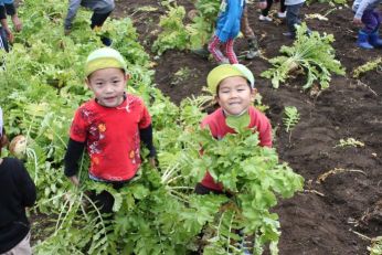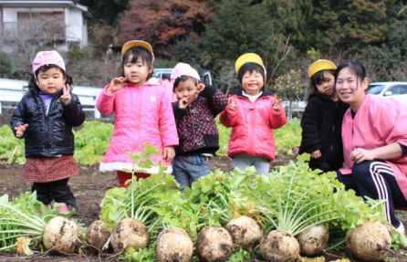 大きなカブのようなお話のようにと言う思いから始まった、聖護院大根作りです。