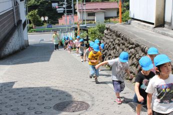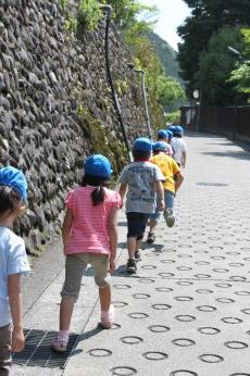 成木保育園のバスを降りて、坂道を歩きました。