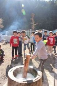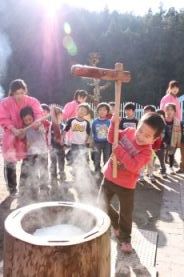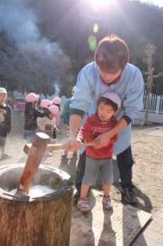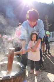 きりん組とぞう組は、一人で搗きました。 |