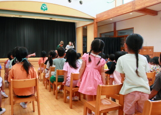 | 2025.10.8 今日は10月の誕生日会が行われました。 職員劇に大笑いしたり、思わずたちあがったりと、 園児は終始おお喜びでした。 |