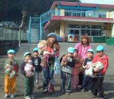 | 今日は2月生まれのお誕生会でした。プレゼントの後はクイズ大会です。 先生が考えた楽しいクイズに子供たちは目をきらきら・・とっても楽しそうでした。 お昼のちょっと前に私にお客様。かわいい小さな犬を7匹も連れて。 園庭で子供たちも犬たちも、もう、たいへん・大喜び・・ぞう組だけしばらく遊びました。 ずるい〜。。ぞう組だけぇぇぇときりん組。また、来てくれるそうです |