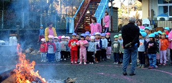 4.5歳のクラスは、大根や人参を切って、豚汁を作りました。お餅と一緒にいただきます。