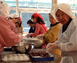 保護者会の役員のお母さんたちも、あんこの丸め方、