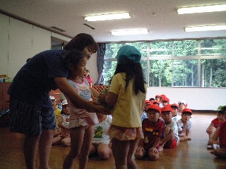 お約束を聞いて、、さぁ、千ヶ瀬第1保育園のお友達、成木保育園お友達、みんなであそぼう。 |