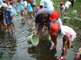 「園長先生、大きな魚を捕まえたよ。見て!!」 |