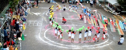 すばらしい天候に恵まれて、白いはとが青い空に舞う、運動会でした。