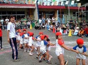 みんなが応援してくれます。ぞう、きりん、ぱんだ組