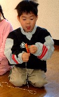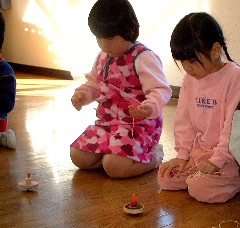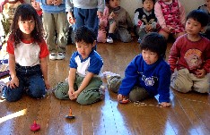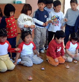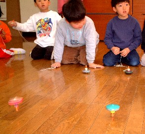昨年の暮れに、白木のコマを子ども達に渡し、