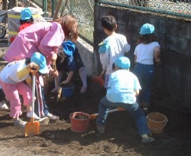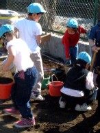 バケツで土を運んで・・・・・・咲くのは、みんなが小学生になってから。