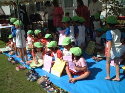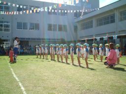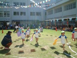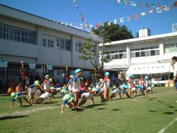 2002年10月10日 地区内にある成木台病院の運動会にぞう、きりん組が出場しました。 |
