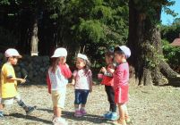 | 2002年10月11日 ぱんだ組とうさぎ組で散歩に行きました。 昨日は公園に行ったけど、今日は神社で遊び、ダチョウを見に行きました。 |