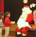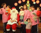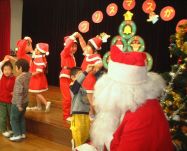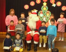 ぞう組が、歓迎の歌と踊りを・・・・ そしてい、いよいよ楽しみにしていたサンタさんからのプレゼントです。 一人ずつサンタさんのところに行って、プレゼントをいただきました。 ありがとうございますって、みんな言えたかな。 |