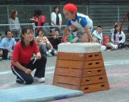 | いよいよ、ぞう組ときりん組の組体操です。 カメラを持つお父さんお母さんもたいへん!! でも、もっと拍手をして欲しいなぁ。 |