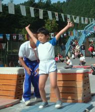 | 体操の先生と。ヤッター!!おー!!!! お父さんやお母さんカメラマンにサービス 記念撮影。 |