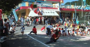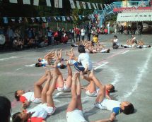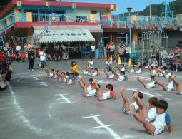 | 最後の体操。みんないっぱい頑張りました。 たくさんの人たちに見ていただき 応援してもらってよかったね。 朝は曇っていたけど、みんなの元気で 雲も飛んでいってしまいました。 |