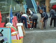 | 2003年10月4日 午前7時職員と保護者会役員で運動会の準備が始まりました。 |