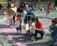 九十九園、あゆみえんのおじいちゃんや おばあちゃんと一緒にふうせん送りゲームをしました。 |